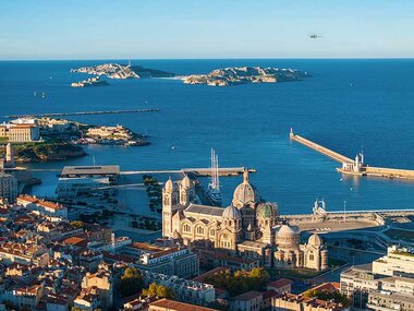 Les vols en hélicoptère en PACA survolent fréquemment Marseille et ses alentours. La cité phocéenne est la plus vieille ville de France et multiplie les charmes et les raisons qui poussent le voyageur à y revenir. Sa renommée, Marseille la doit surtout à sa position géographique, lovée entre un port naturel entouré de collines rocailleuses et une côte qui égrène de petites îles constamment réchauffées par le soleil du sud de la France.