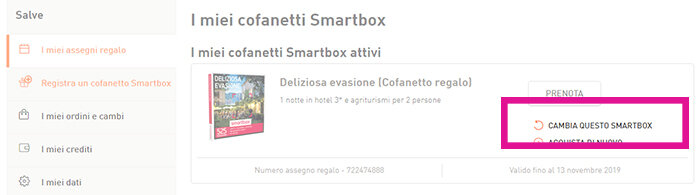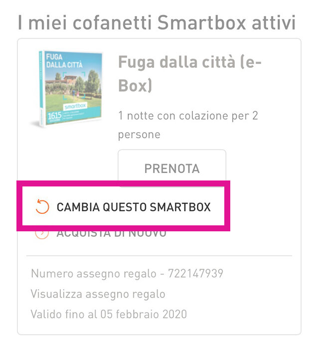 Una volta rimossa dal suo cartoncino, non sarà possibile riposizionare la carta regalo sullo stesso. Potrai cambiare la tua carta regalo accedendo al tuo account personale Smartbox -