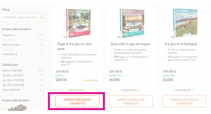 I cofanetti regalo Smartbox possono essere acquistati: